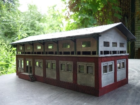 Für eine maßstabgerechte Darstellung der Anlagen ist eine Fläche von 2,2 m x 9 m notwendig. Mehr als 40 Gebäude müssen nachgebaut werden. Als Material dienen ABS- und MDF-Platten. Für die vielen Ziegelmauern verwenden wir die Kunststoff-Dekorplatte von Auhagen, dazu Profile von Plastruct, Evergreen und Aeronaut.