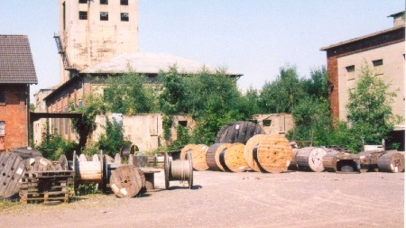 Man blickt hier auf die ehemaligen Gleisanlagen. Der eigentliche Schacht befand sich hinter den heutigen Hallen.